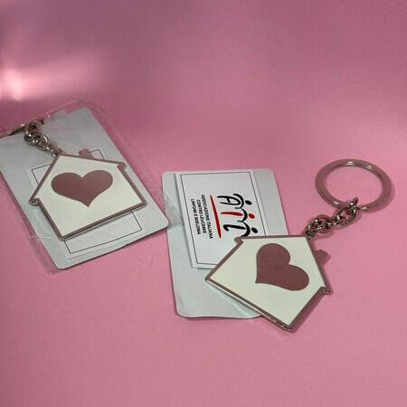 Portachiavi con Casa o portachiavi Cuore, in lega metallica con catena ed anello in acciaio.